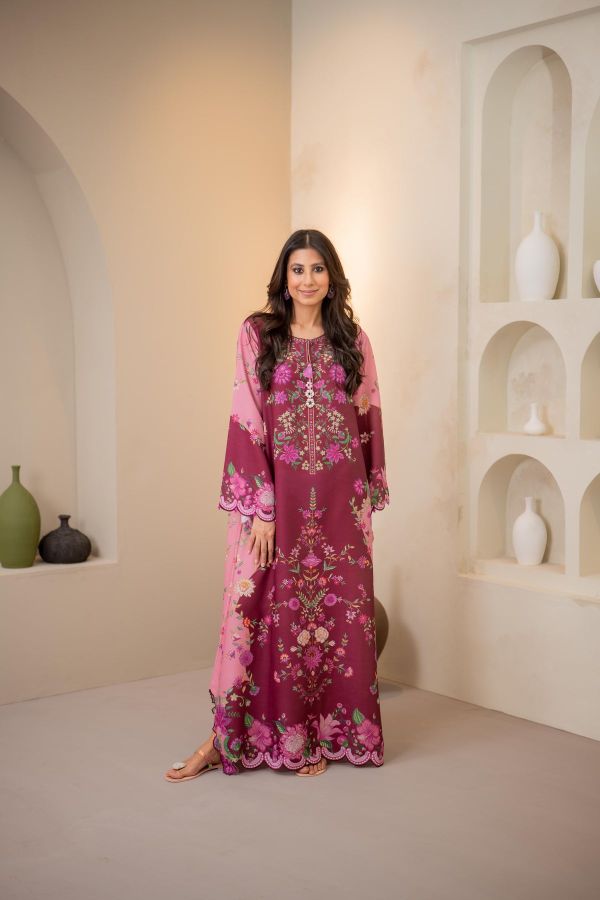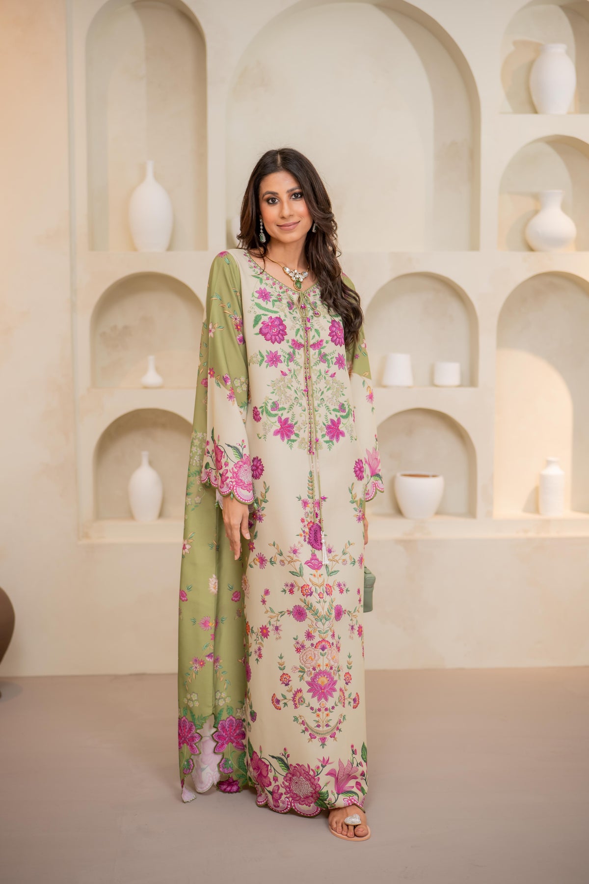 Paired with a two toned organza dupatta, this ensemble adds an ethereal touch, making it a timeless addition to your wardrobe.